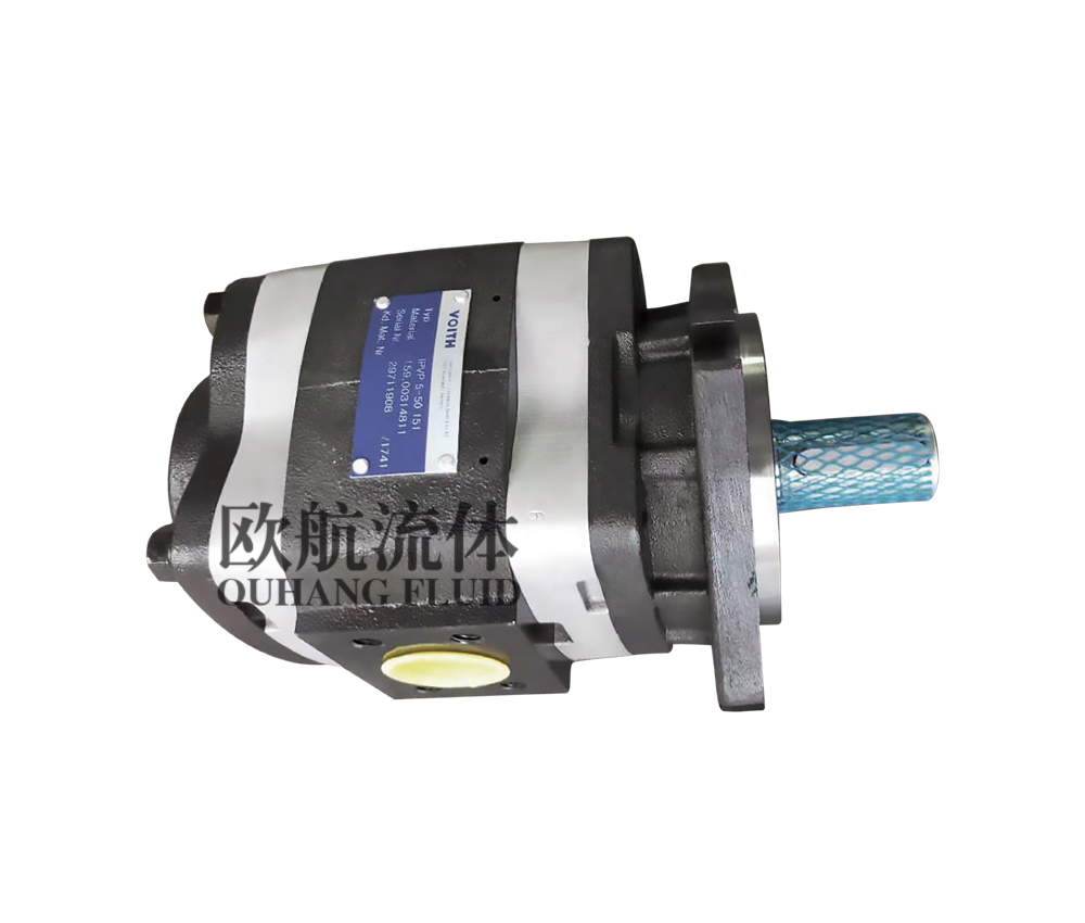 福伊特齒輪泵IPVP 5-50 151把壓力液(通常為液壓油)吸到小齒輪與內齒輪之間。嚙合平穩的2個齒輪確保優異的自吸能力。徑向上齒輪腔是由嚙合齒及月牙塊密封。軸向上,采用軸向支撐盤形成幾乎無間隙的密封形成壓力腔。這種設計最大限度減少了容積損失,從而提高效率。齒輪旋轉時,牙頭進入齒輪牙之間的間隙,排出壓力油。